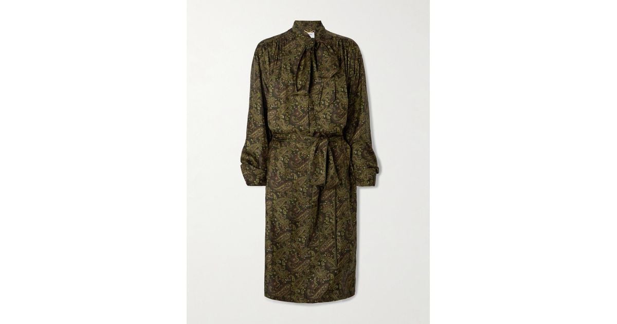 Tag : Saint Laurent Pussy Bow Belted Paisley Print Silk Twill Mini Dress In Green Lyst