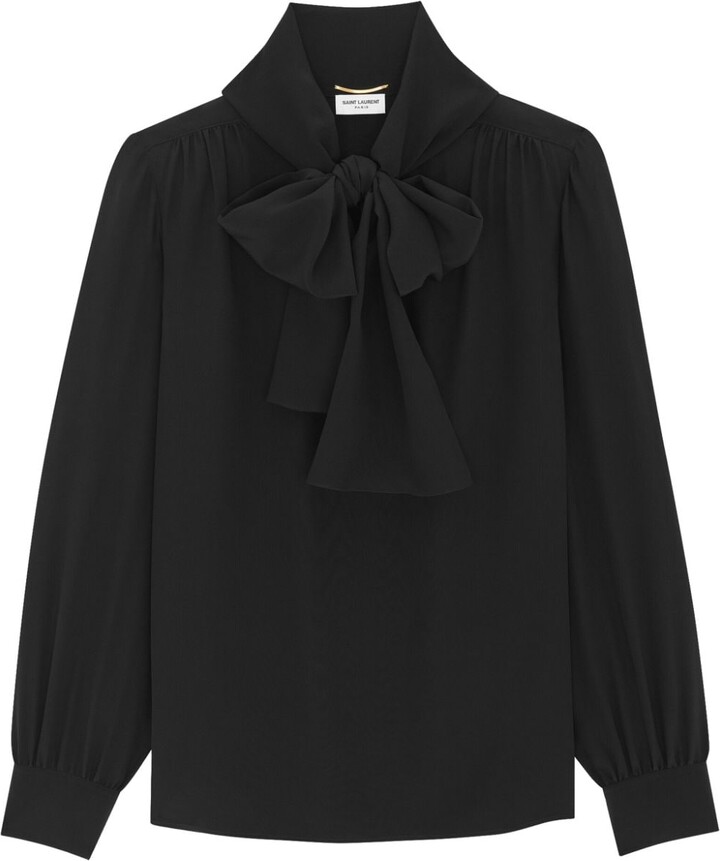 Tag : Saint Laurent Pussy Bow Collar Silk Blouse Shopstyle Tops