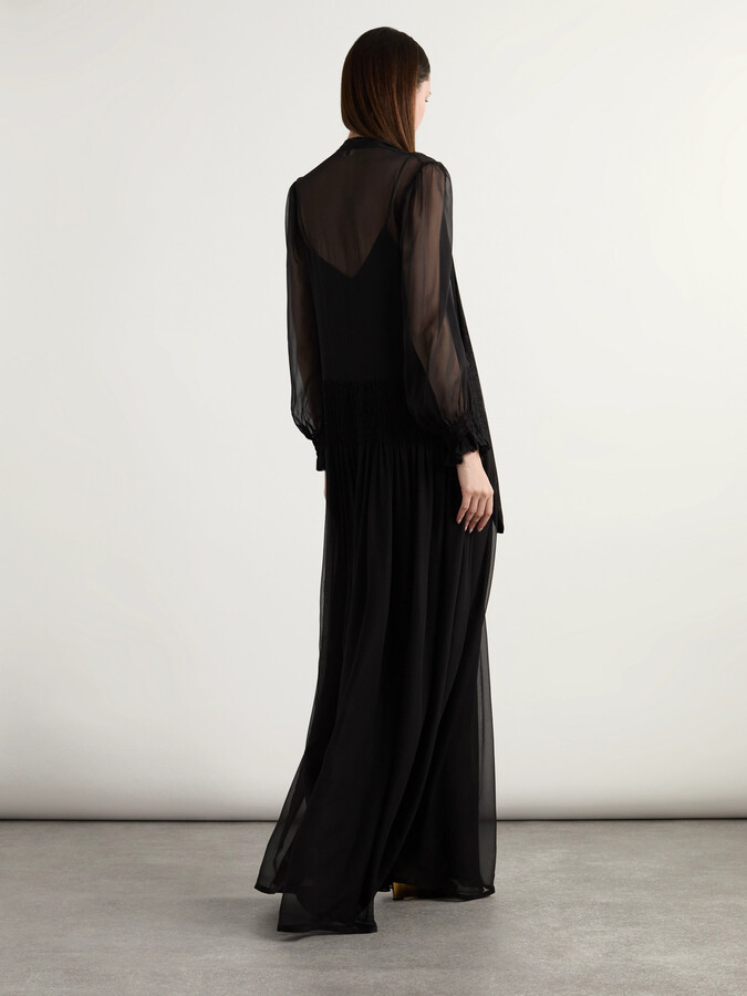 Tag : Saint Laurent Pussy Bow Shirred Silk Chiffon Maxi Dress Black Shopstyle