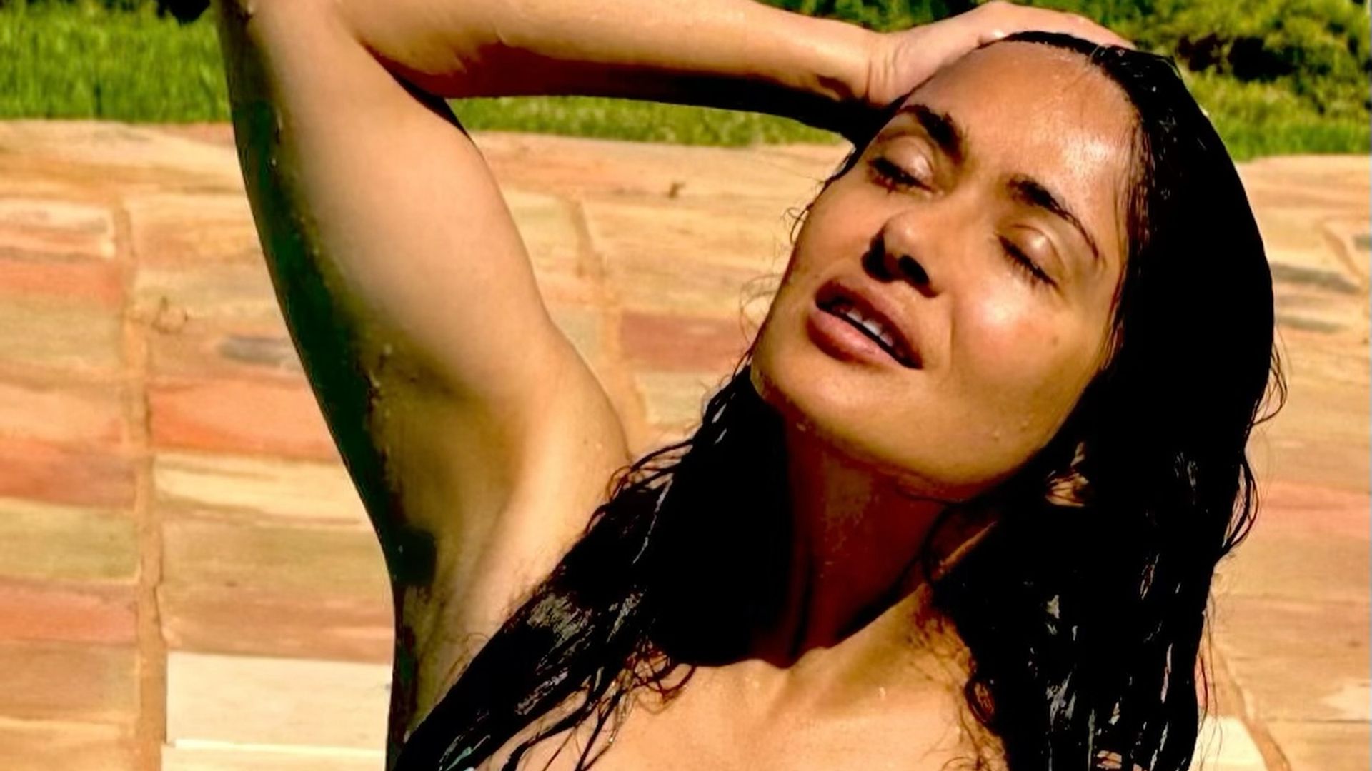 Tag : Salma Hayek Stuns In Bikini Top And Windswept Beach Curls Hello