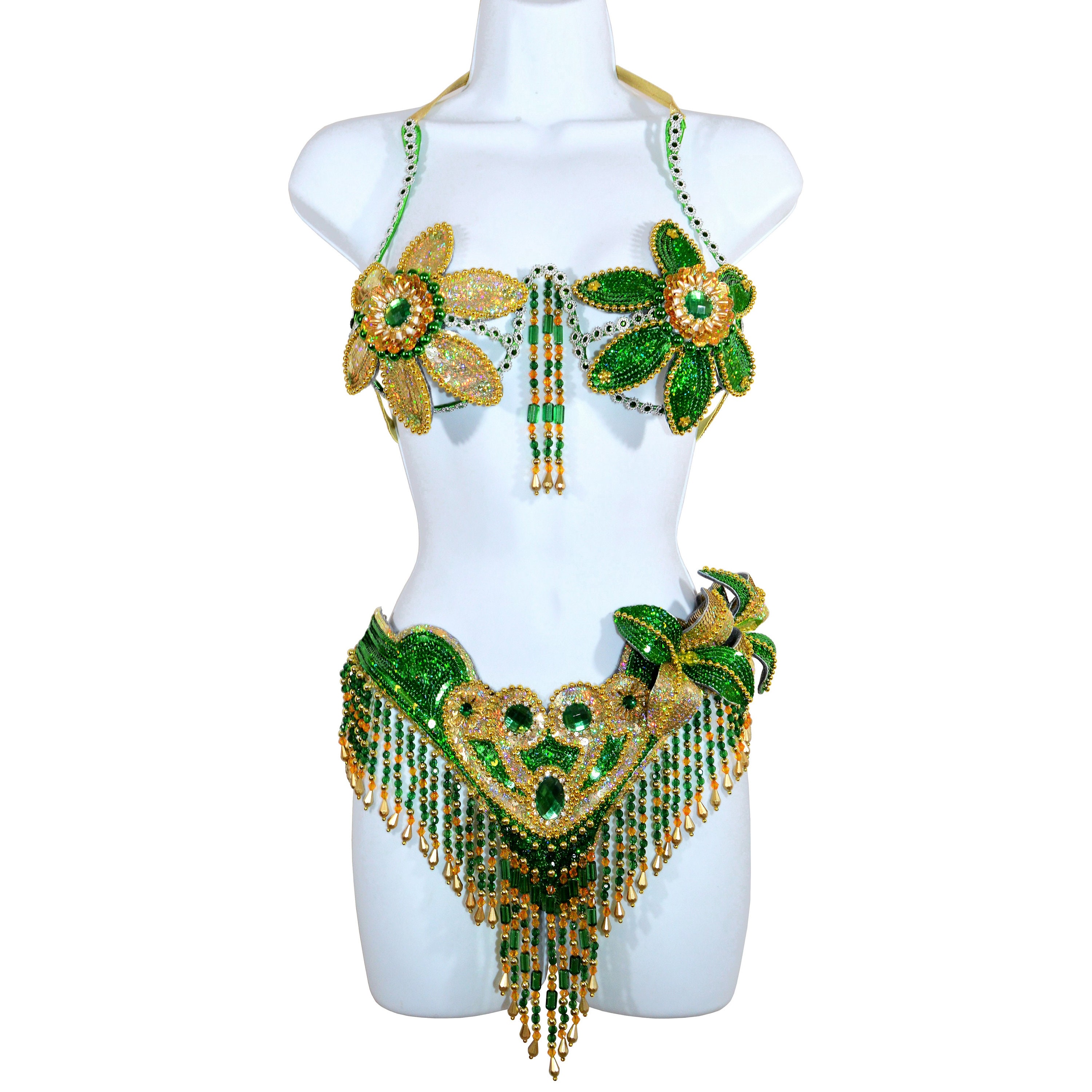 Samba Show Girl Bra Bikini Brazilian Green Gold Set Belly Dance Carnival Costume Waistband Bra pictures has 500 x 400 · 50 kB · jpeg.