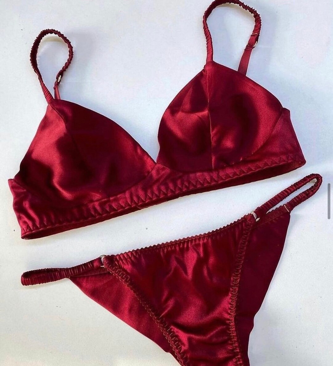 Satin Red Lace Satin Lingerie Set Bra Bralette Lace Panty Etsy is a popular picture for sexy and hot.