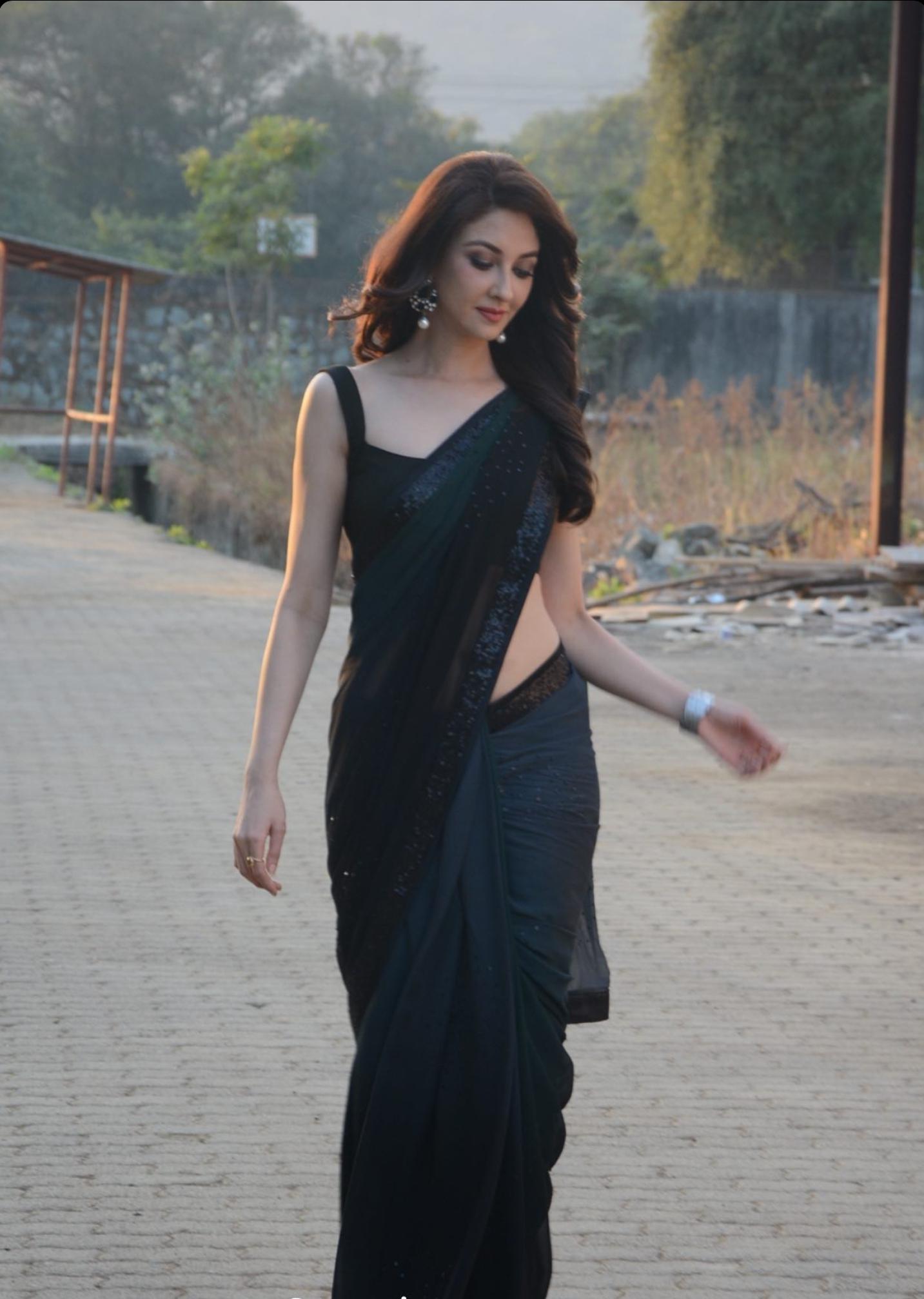 Saumya In Hot Black Saree Scrolller is a popular picture for sexy and hot.
