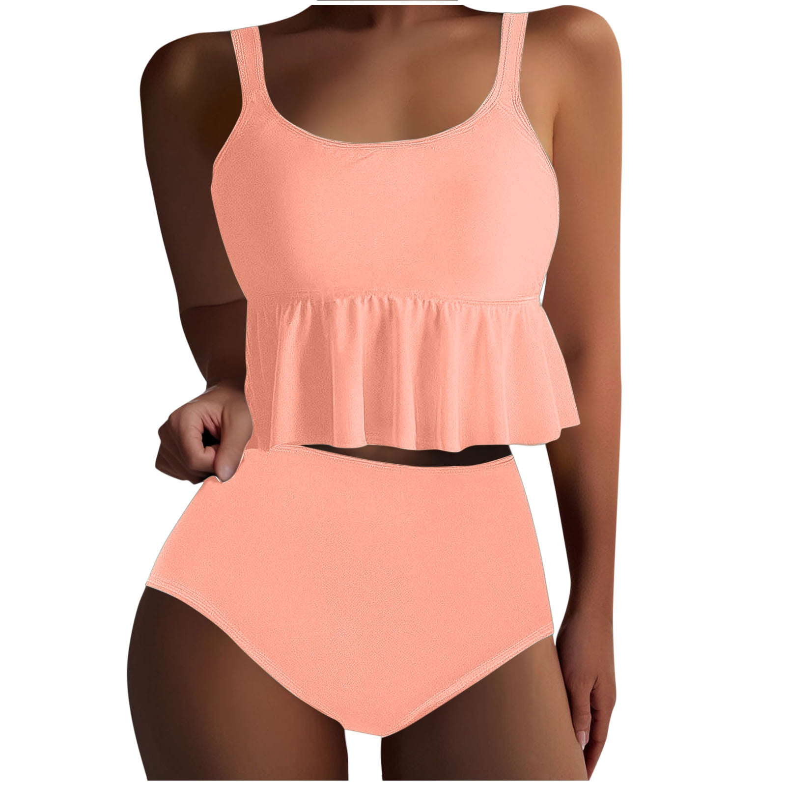 Savings Utsjkr Cute Two Piece Bathing Suits Women Ruffle Flounce Crop Top High Waisted Bikini