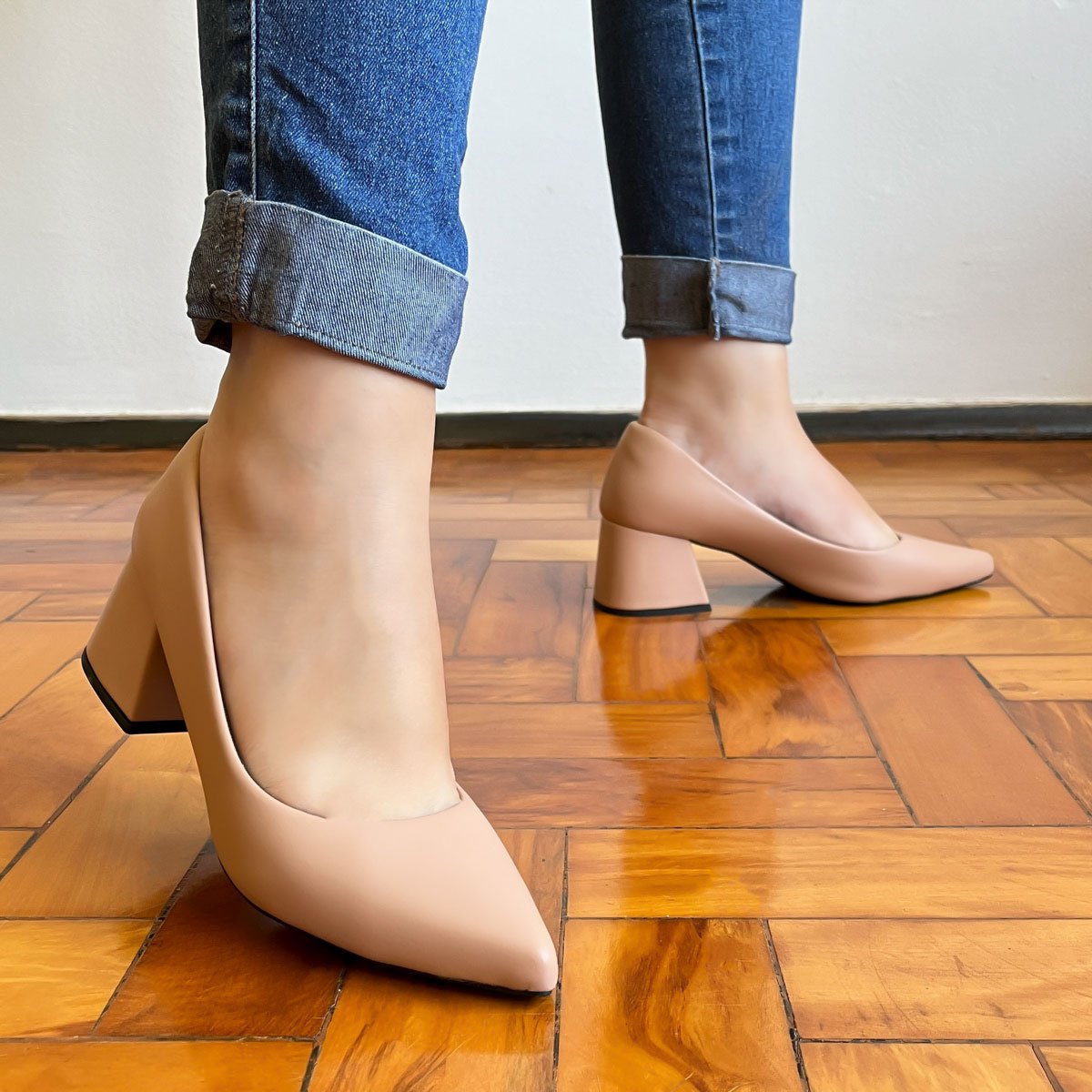 Tag : Scarpin Feminino Nude Salto Bloco Grosso Bege