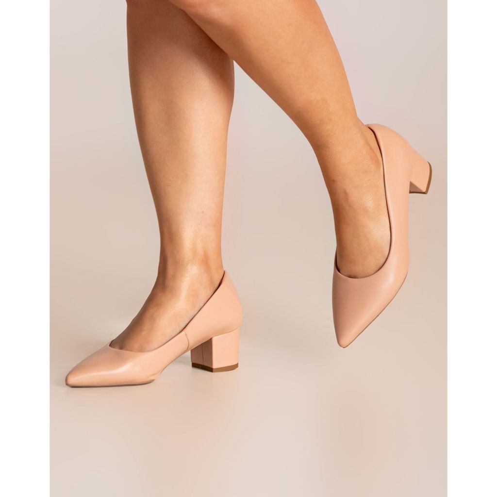 Scarpin Feminino Nude Salto Bloco Quadrado Baixo Cm Palmilha Confort Salto Fechado Bico Fino is a popular picture for sexy and hot.