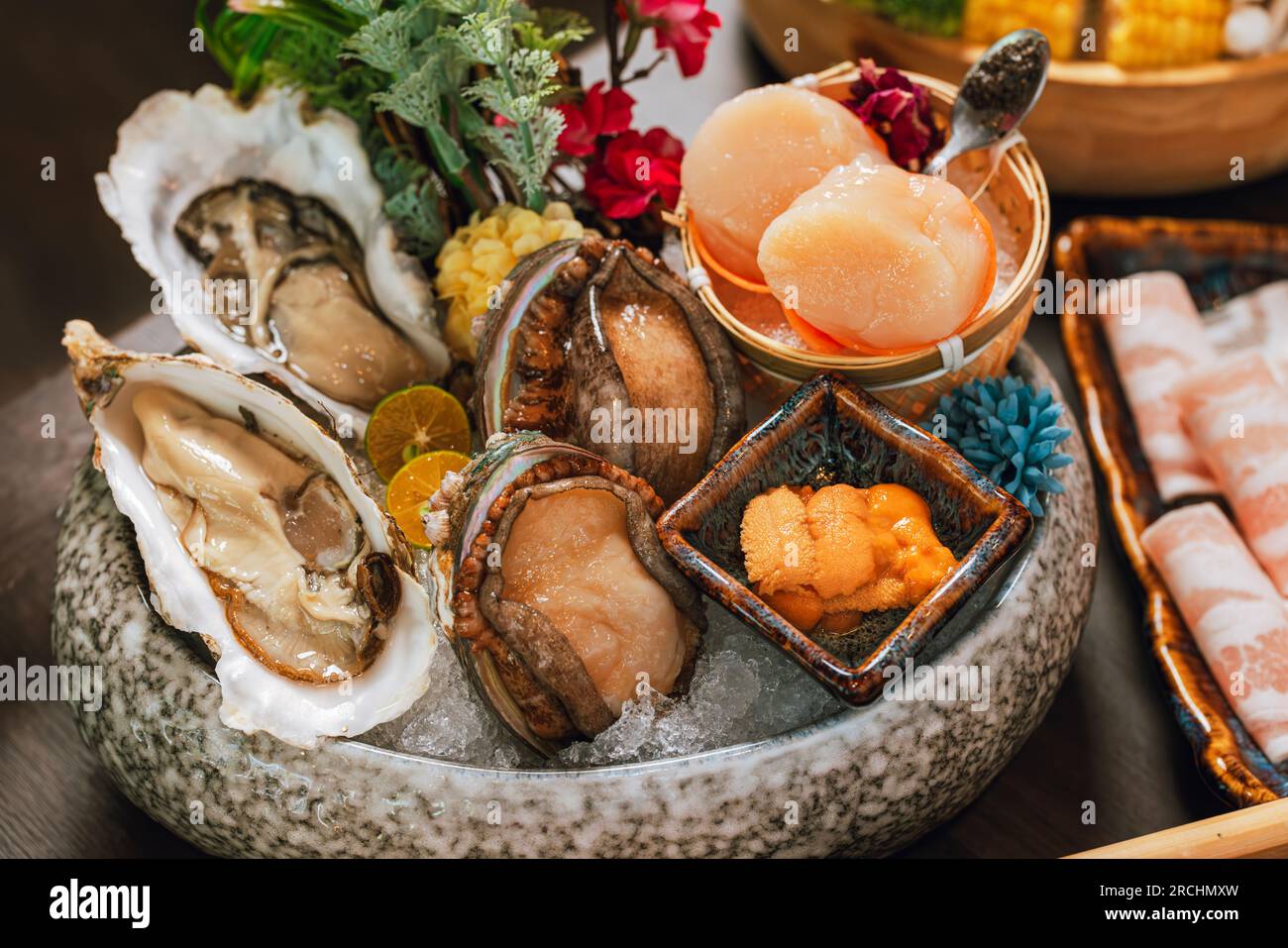 Tag : Seafood Cuisine Plate And Beef Sliced Meat For Hot Pots Scallops Seashells Oysters Caviar