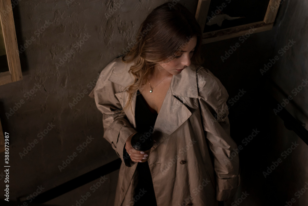 Tag : Sensual Attractive Brunette In Trench Coat In Dark Loft Room Urban Lifestyle Concept Stock