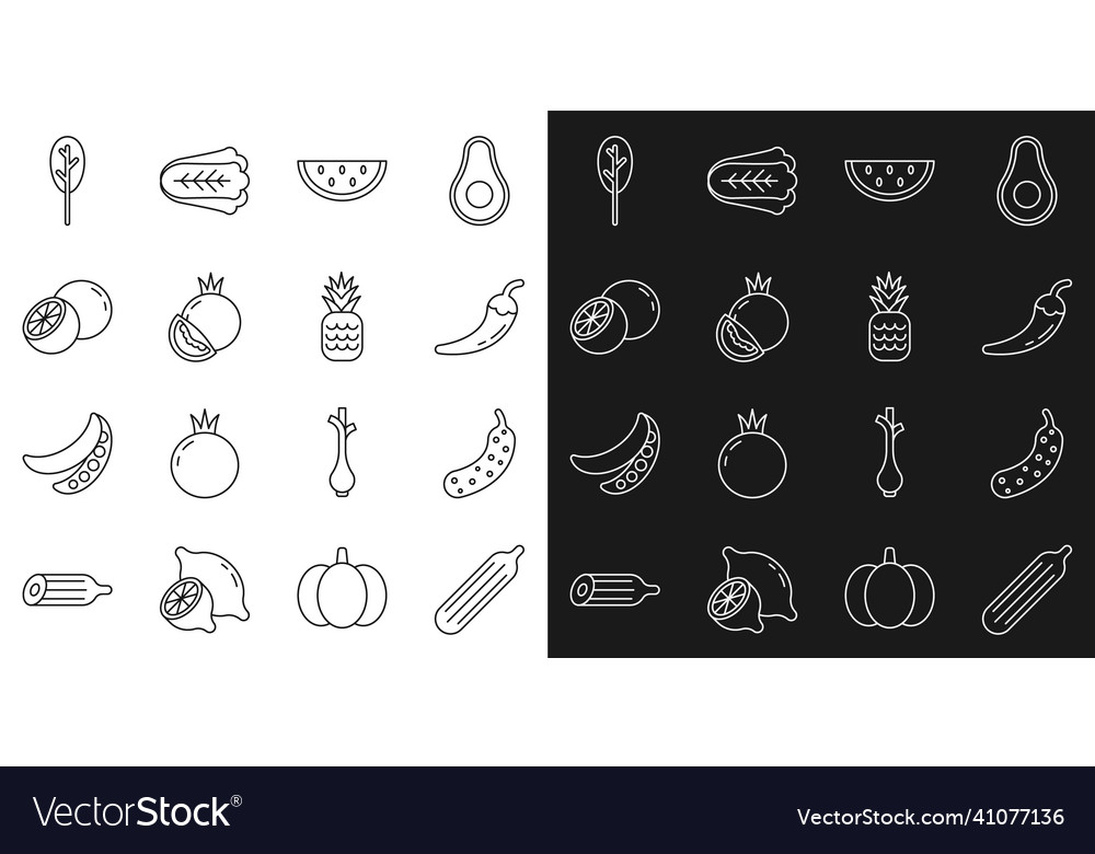 Tag : Set Line Fresh Cucumber Hot Chili Pepper Pod Vector Image