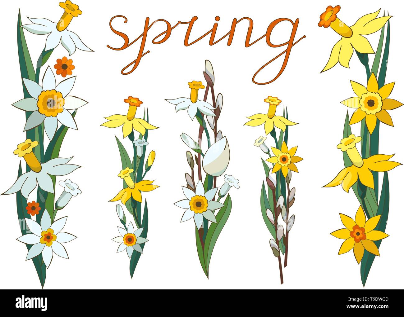 Tag : Set Of Vector Hand Drawn Floral Elements Isolated On A White Background Narcissus Pussy Willow