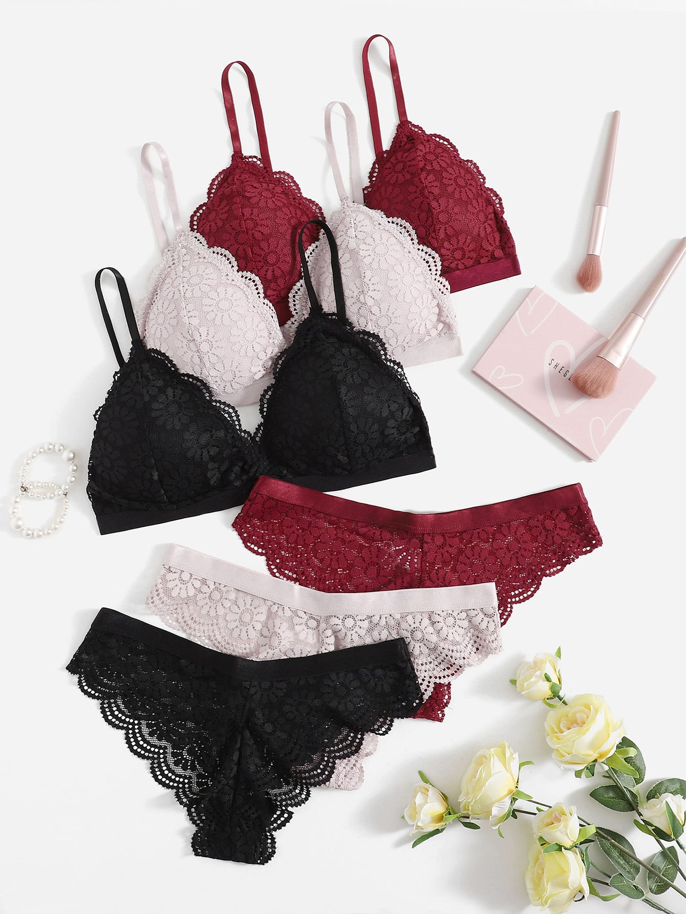 Tag : Sets Floral Lace Bow Decor Lingerie Set