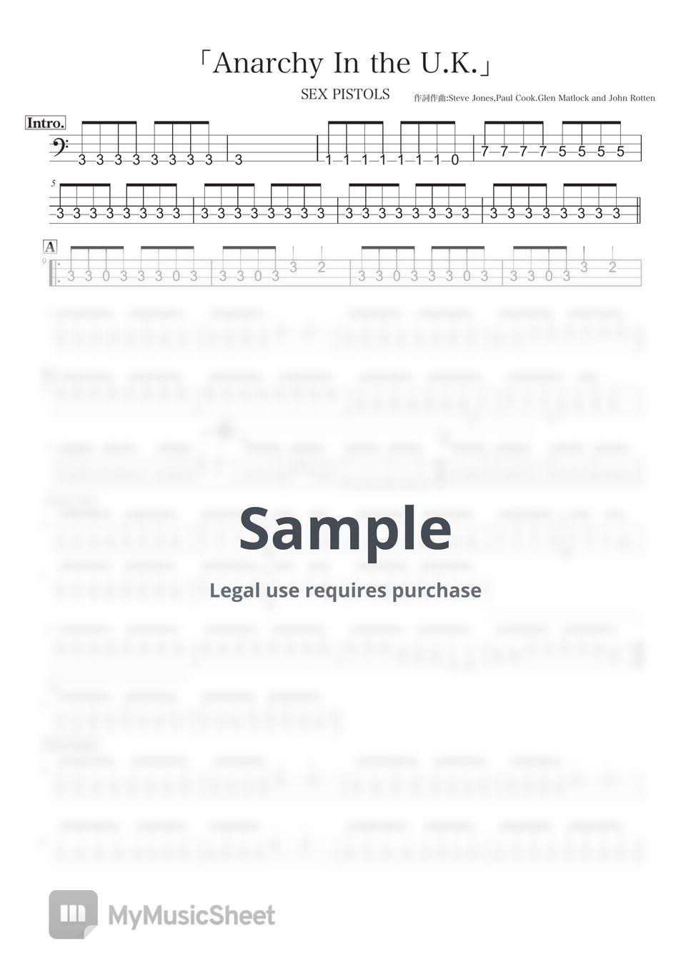 Sex Pistols Anarchy In The U K Tab Sheets By