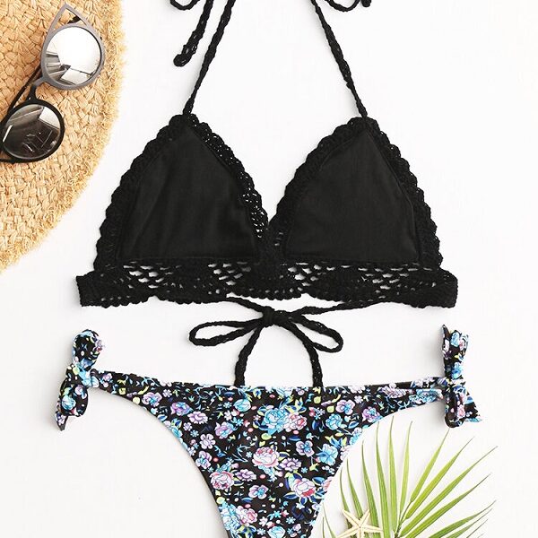 Tag : Sexy Bikini Triangle Halter Crochet Trim Backless Floral Print String Panty Swimwear Td Mercado