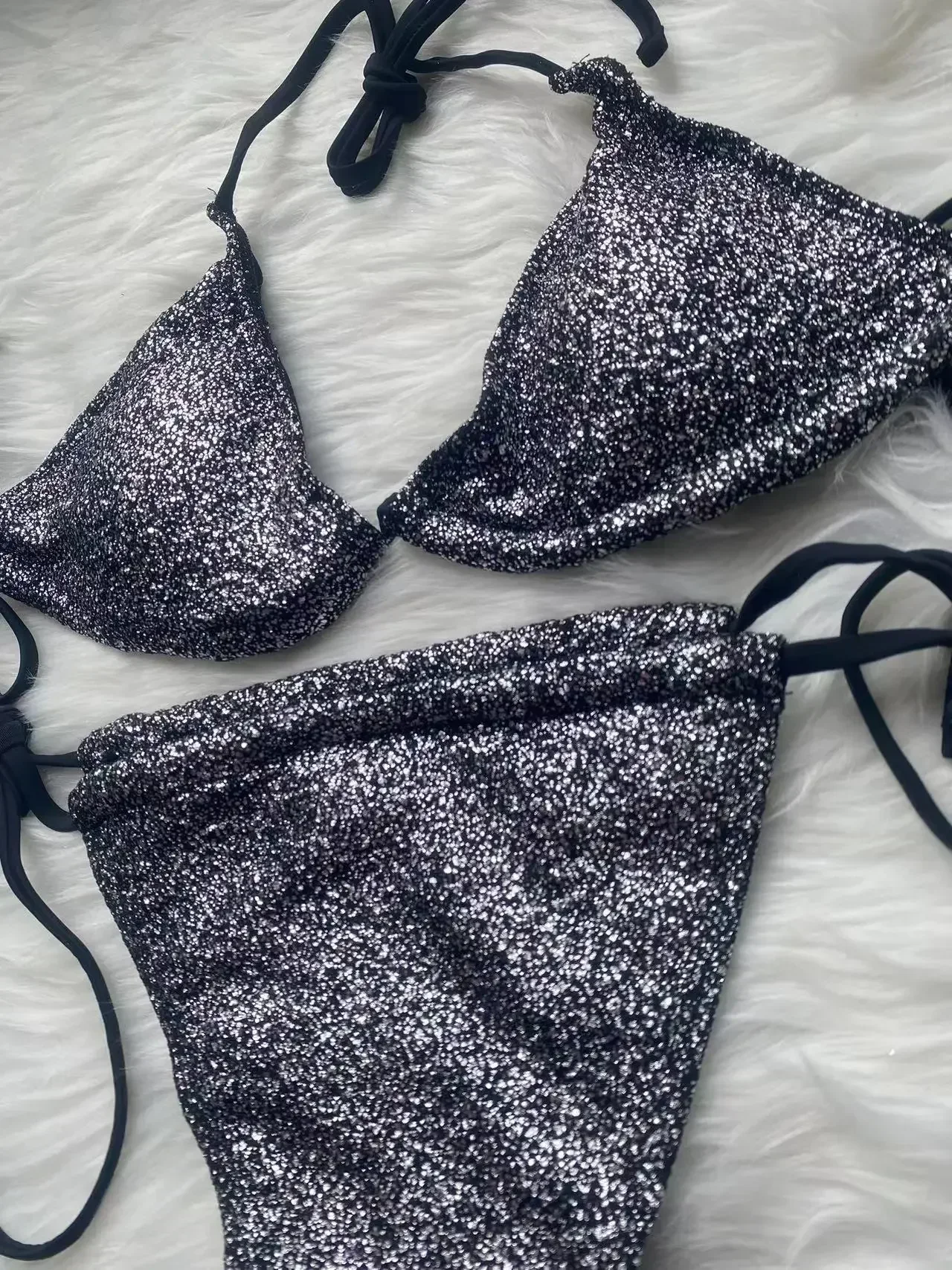 Tag : Sexy Bikinis Shiny Bikini Sets Halter Swimsuit Women Swimwear Triangle Beachwear Bandage