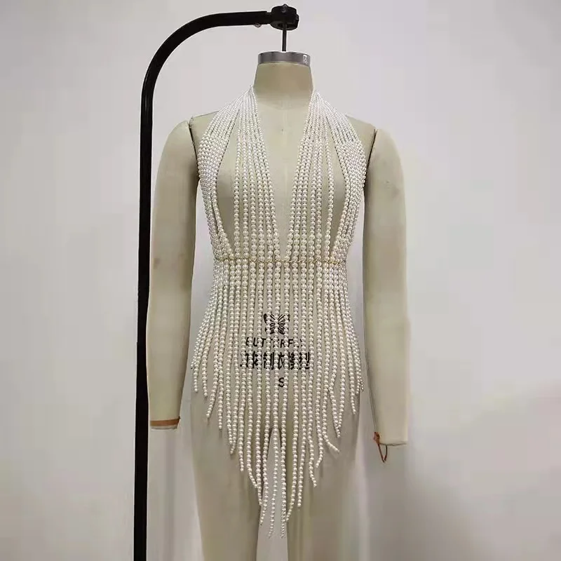 Sexy Body Chain Bikini Pearl Wrapping Chain Multilayer Tassels Bra 157080