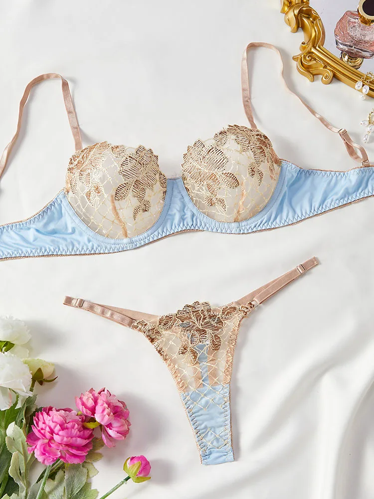 Sexy Bra Sets For Women Embroidery Floral Luxury Lingerie Mesh Lace Adjusted Underwear Thong is a popular picture for sexy and hot.