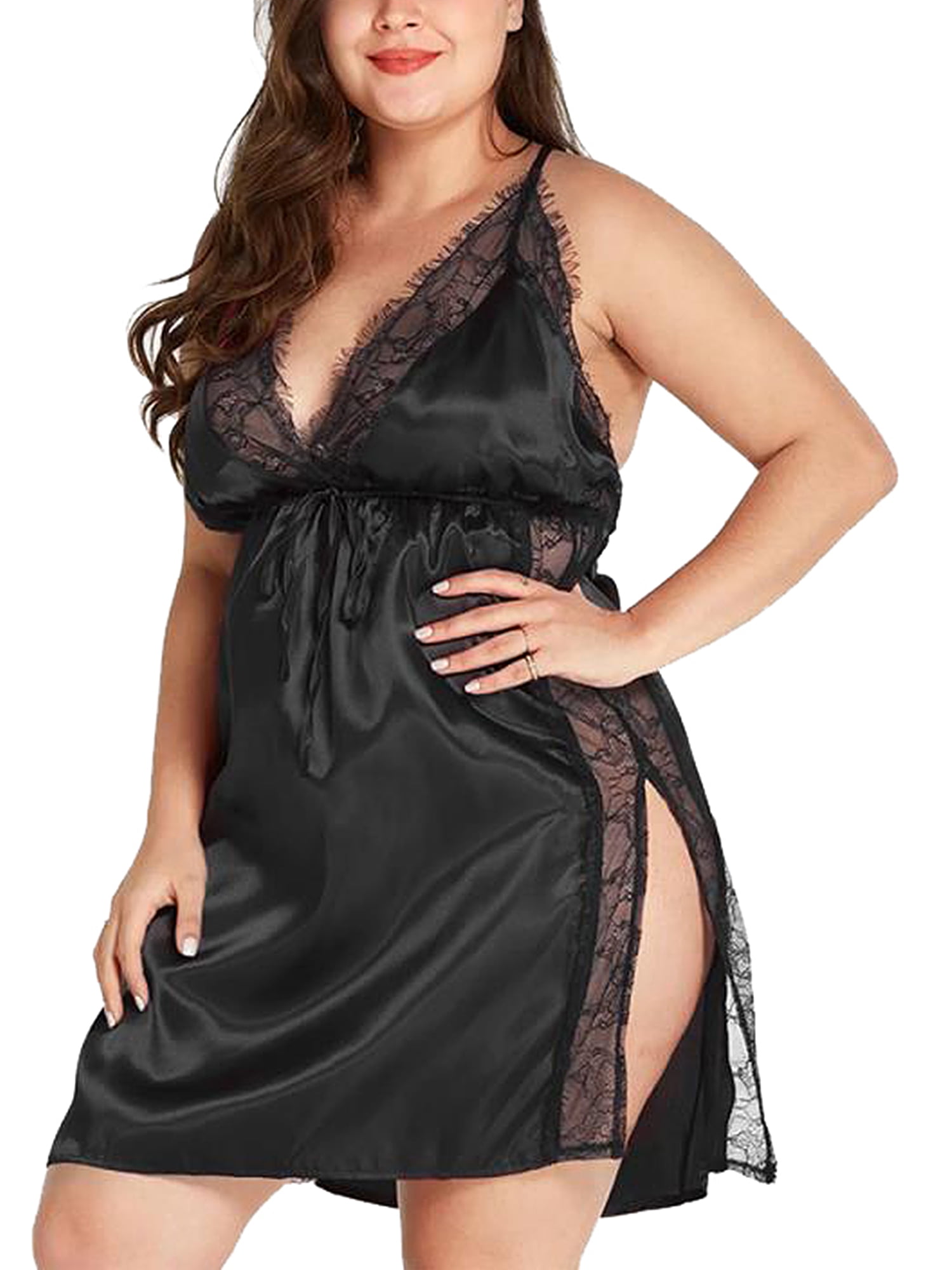 Sexy Deep V Neck Lace Lingerie Dress For Plus Size Women Backless Pajamas Nightwear Sleepwear pictures has 500 x 400 · 50 kB · jpeg.