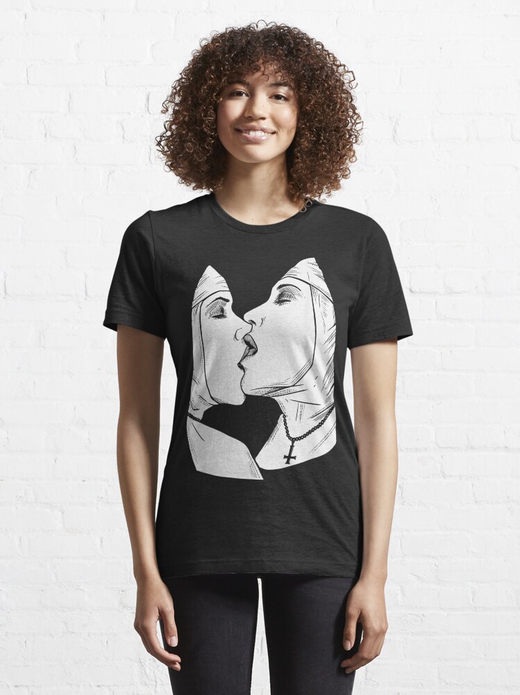Sexy Lesbian Kiss Nun Bondage Satanic Occult Pagan Bdsm Naughty Evil Unholy Nuns T Shirt By