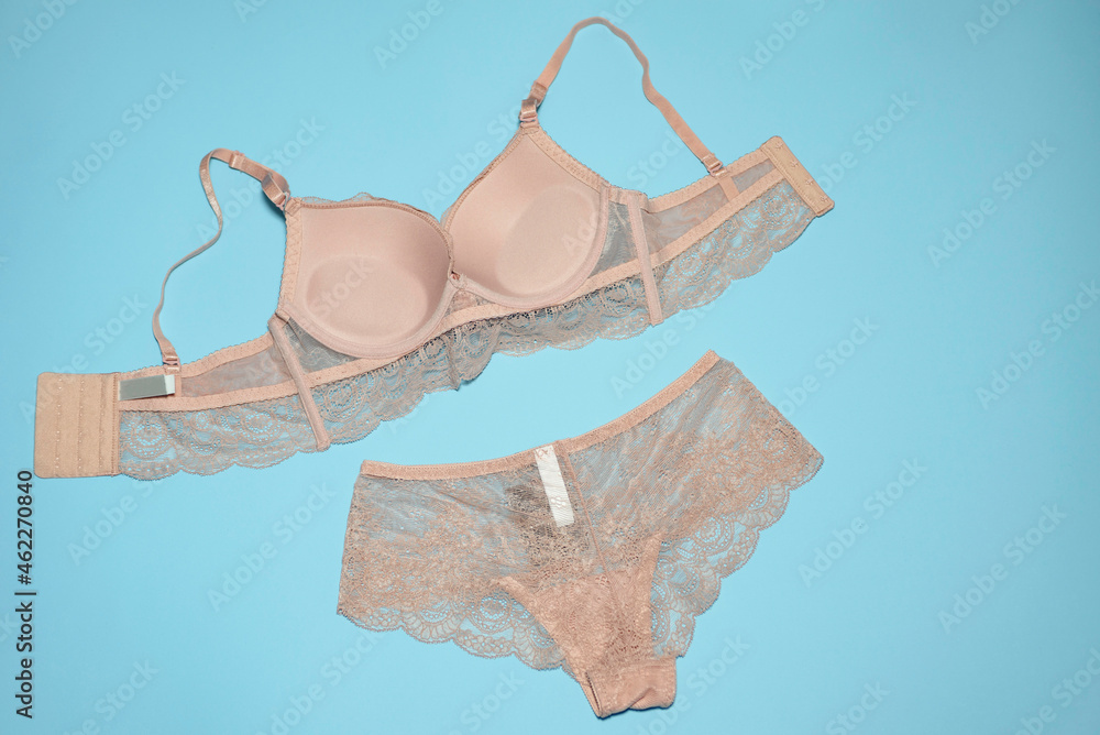 Sexy Lingerie Flat Lay Lace Bra And Nude Panties Stock Photo Adobe Stock