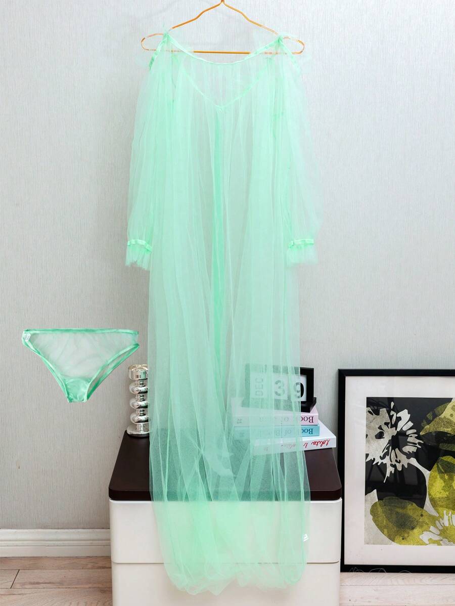 Sexy Lingerie Set Sheer Mesh Loose Off Shoulder Long Dress And Panties Shein Usa is a popular picture for sexy and hot.