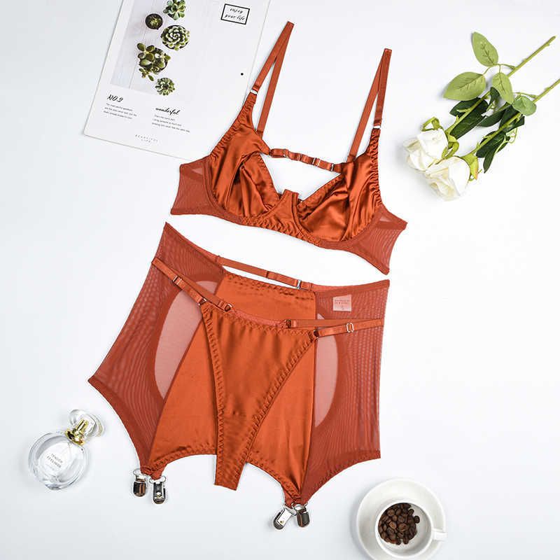 Sexy Set Silk Underwear Lingerie Sexy Crotchless Garter Bra Kit Push Up Bilizna Set Fine Setup is a popular picture for sexy and hot.