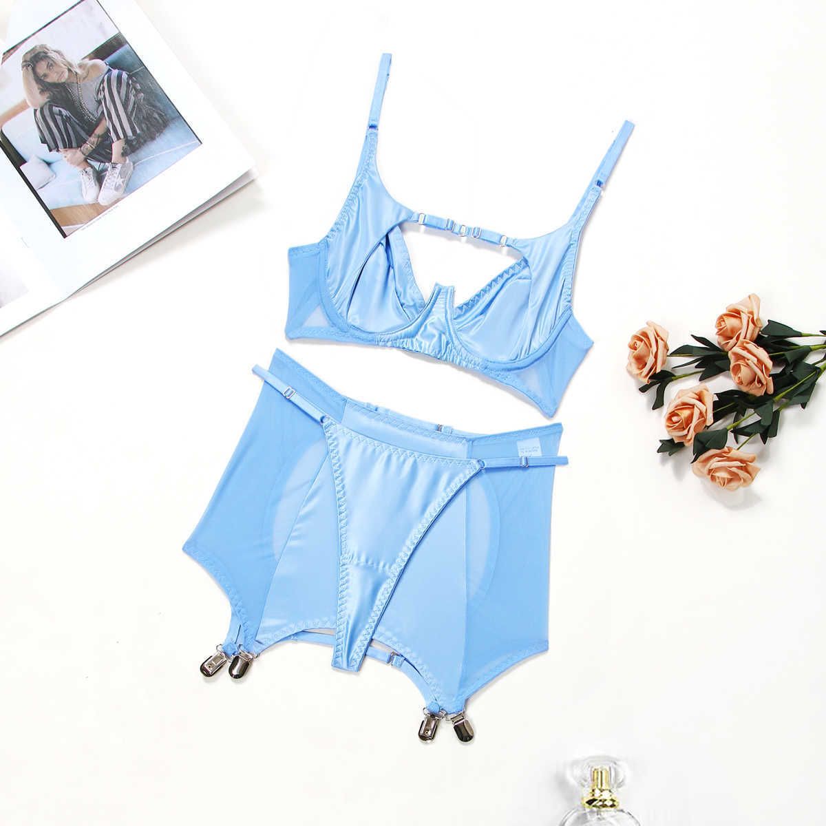 Sexy Set Silk Underwear Lingerie Sexy Crotchless Garter Bra Kit Push Up Bilizna Set Fine Setup is a popular picture for sexy and hot.