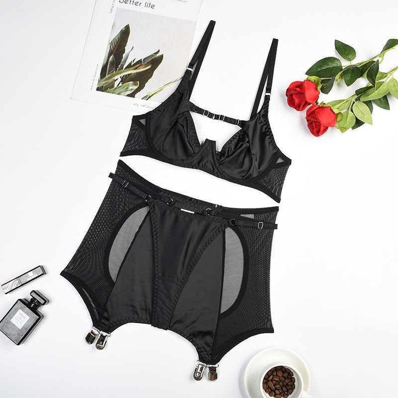 Sexy Set Silk Underwear Lingerie Sexy Crotchless Garter Bra Kit Push Up Bilizna Set Fine Setup is a popular picture for sexy and hot.