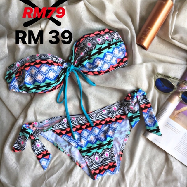 Tag : Sexy String Tie Bikini Padded Beachwear Swimsuit Bathing Suit Low Cut Bottom Ready Stocks