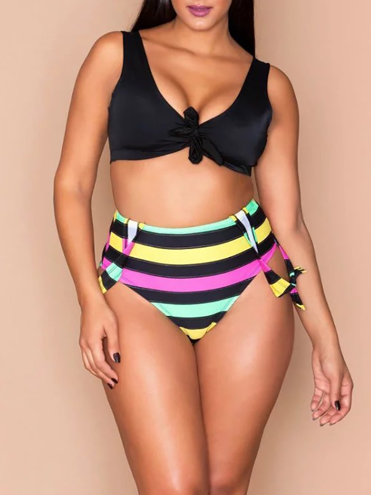 Sexy Strips Print Knoted Overalls Bikini Swimsuit is a popular picture for sexy and hot.