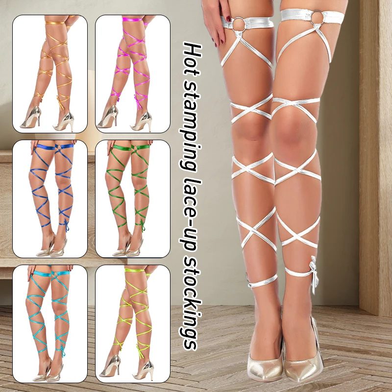 Tag : Sexy Women Lingerie Bandage Fishnet Stockings Imitation Belt Leg Ring Long Tie Belt Thigh High