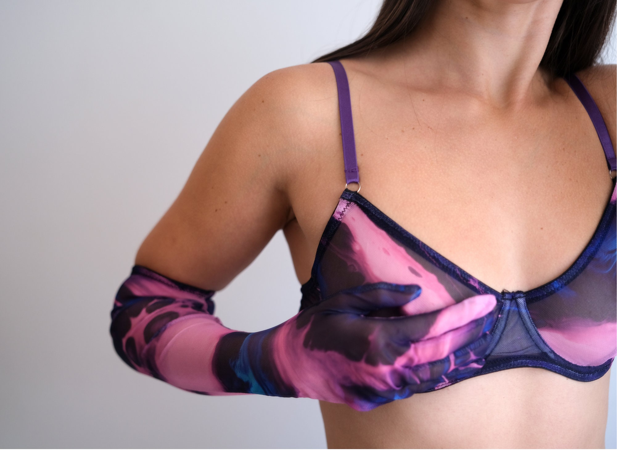 Sheer Mesh Lingerie Set With Garter Belt And Glovestie Dye Bra And High Waisted Panties Unique is a popular picture for sexy and hot.