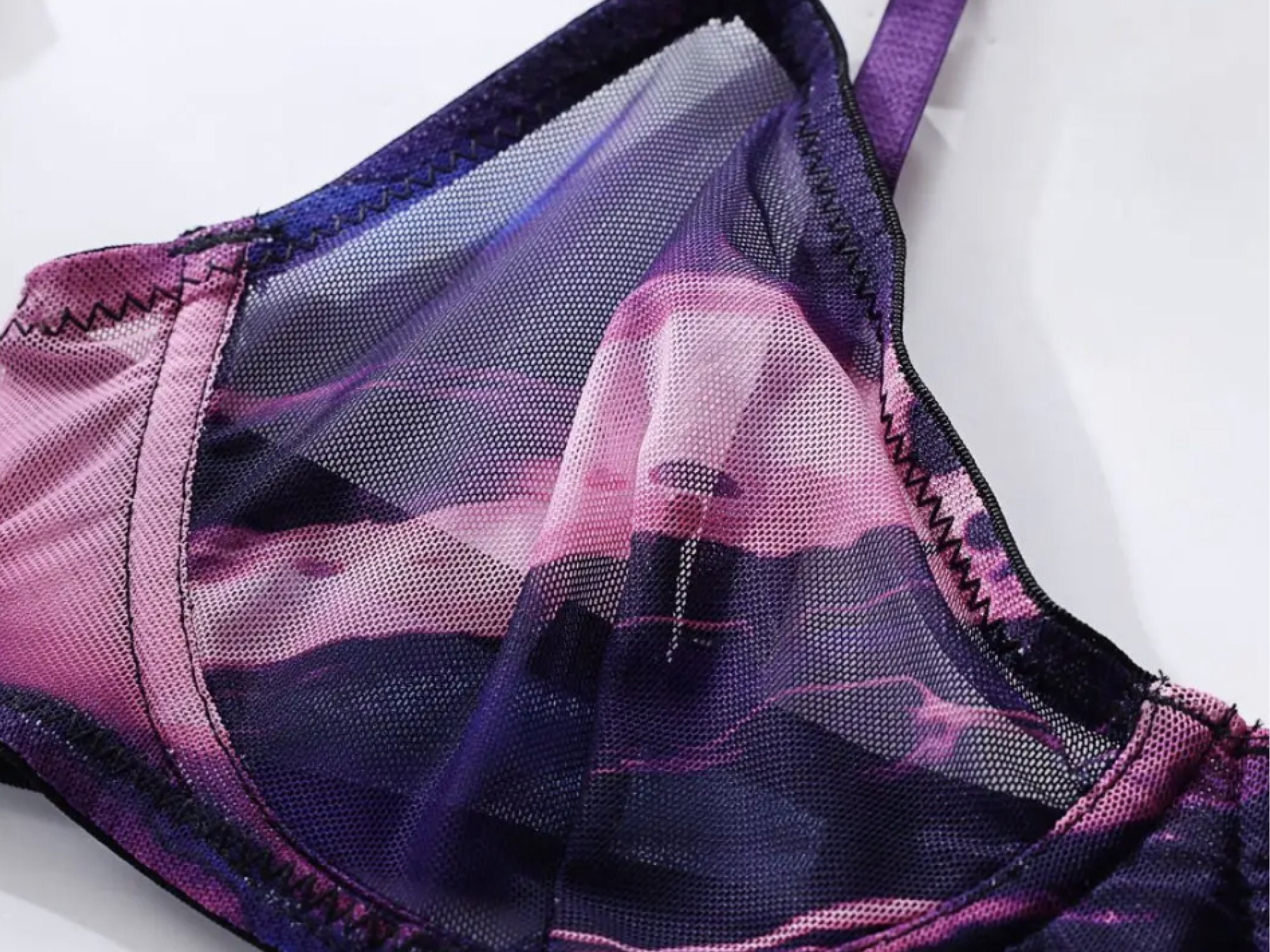 Tag : Sheer Mesh Lingerie Set With Garter Belt And Glovestie Dye Bra And High Waisted Panties Unique