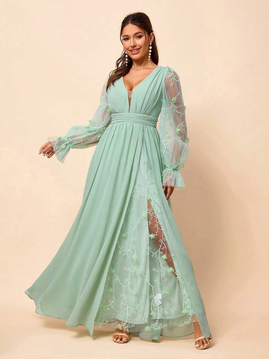 Shein Belle Embroidered Mesh Contrast D Flower Decor Split Lingerie Dress For Bridal Shower Or pictures has 500 x 400 · 50 kB · jpeg.