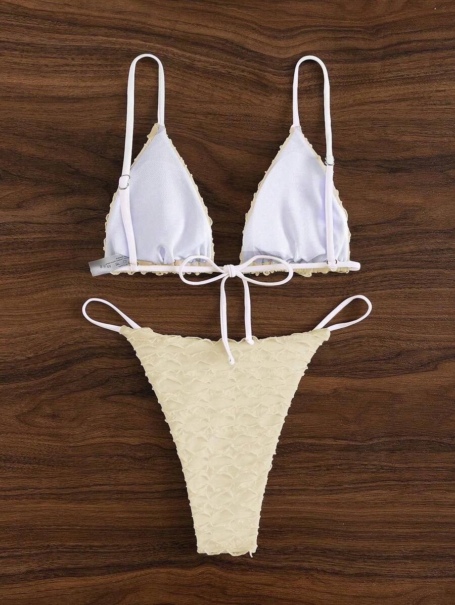 Shein Swim Basics Conjunto De Bikini Tipo Tanga Con Top Con Nudo En La Espalda Y Ribetes De is a popular picture for sexy and hot.