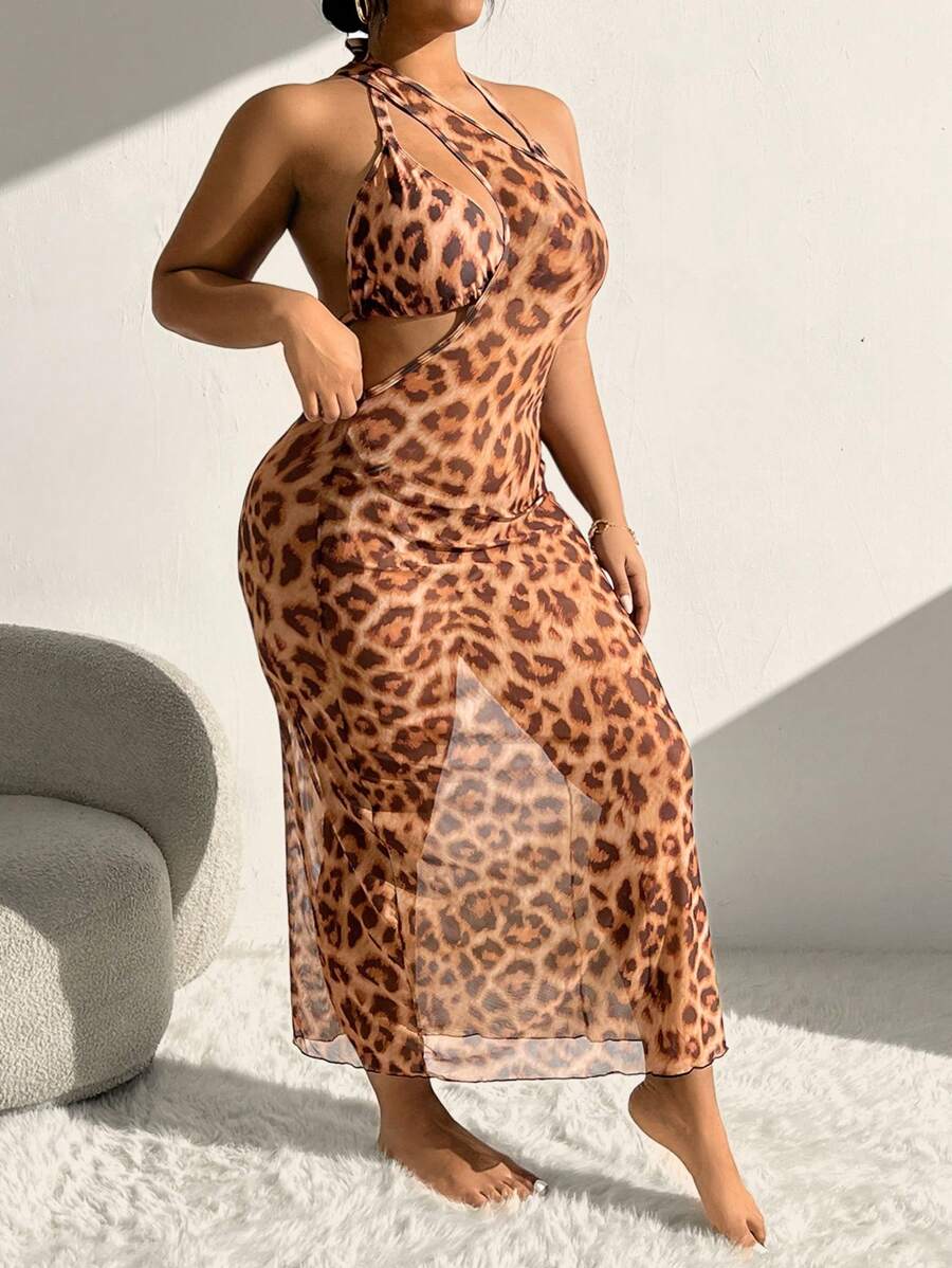 Shein Swim Curve Summer Beach Plus Size Women S Leopard Printed Halter Neck Separated Bikini Set is a popular picture for sexy and hot.