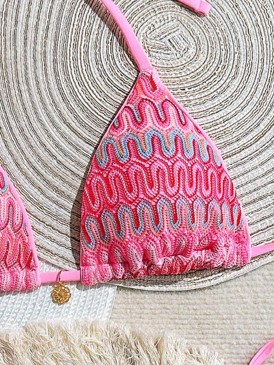 Shein Swim Mod Pcs Set Summer Women Colorful Textured Halter Neck Triangle Bikini Top Side is a popular picture for sexy and hot.