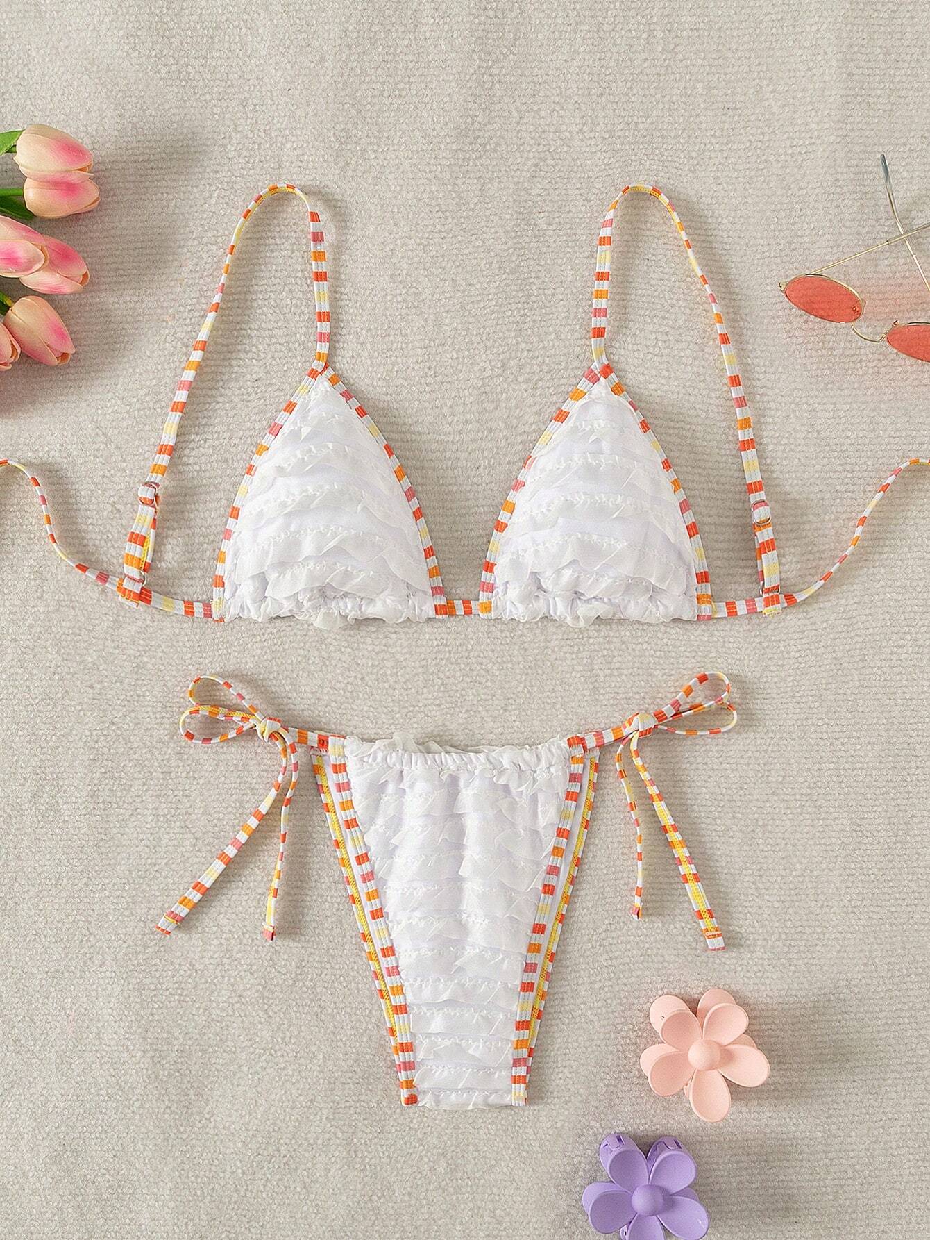 Shein Swim Mod Women Striped Bikini Set With Flounce Trim For Beach Vacation Summer Beach is a popular picture for sexy and hot.