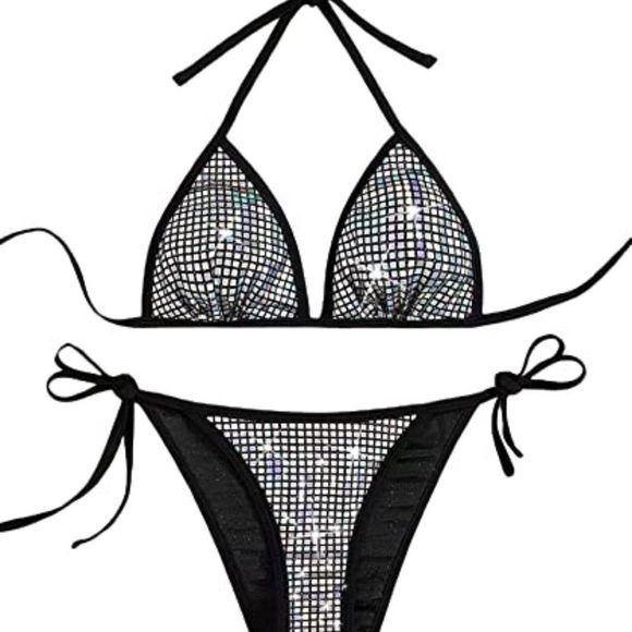 Shein Swim Sheinwomensmetallic Triangle Swimsuit High Cut Thong Tie Side Bikini Set Poshmark is a popular picture for sexy and hot.