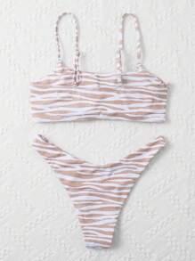 Related pictures for Shein Swim Summer Beach Zebra Stripe High Cut Bikini Set Shein Usa