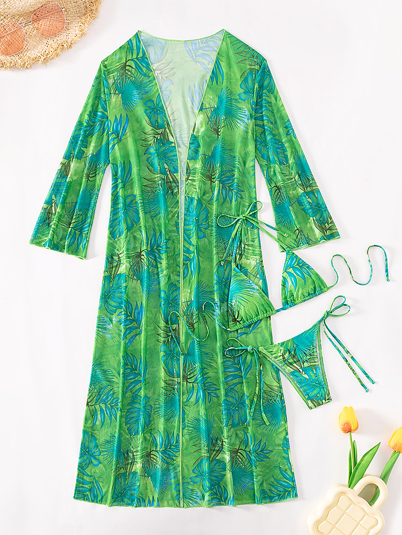 Shein Swim Sxy Tropical Print Bikini Set Halter Triangle Bra Tie Side Bottom Long Sleeve pictures has 500 x 400 · 50 kB · jpeg.