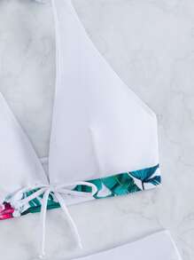 Shein Swim Vcay Tropical Print Bikini Set Halter Bra Boxer Shorts is a popular picture for sexy and hot.