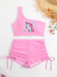 Tag : Shein Unicorn Print One Shoulder Shorts Summer Beach Bikini Set Shein Usa