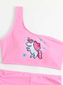 Shein Unicorn Print One Shoulder Shorts Summer Beach Bikini Set Shein Usa 45844