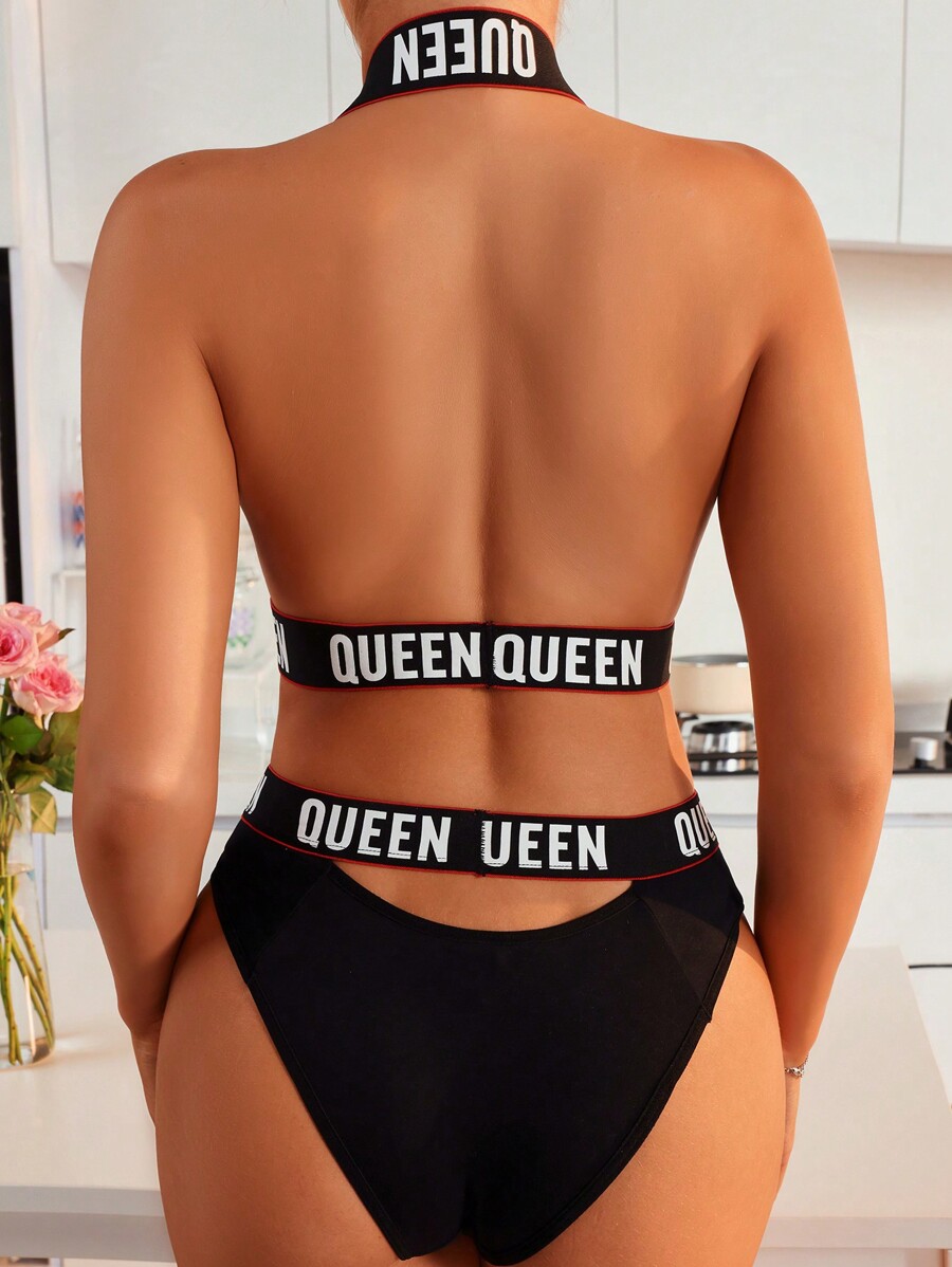 Shein Women S Letter Print Halter Strap Bra And Triangle Panties Sexy Lingerie Set No Chest Pad is a popular picture for sexy and hot.