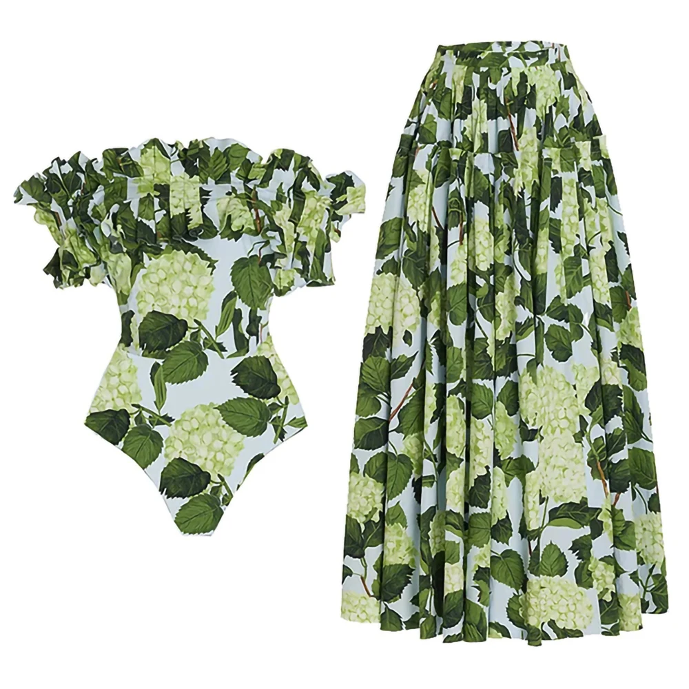 Tag : Shoulder Green Hydrangea Flower Print Swimsuit One Piece Sexy Halter Fashion Bikini High Waist