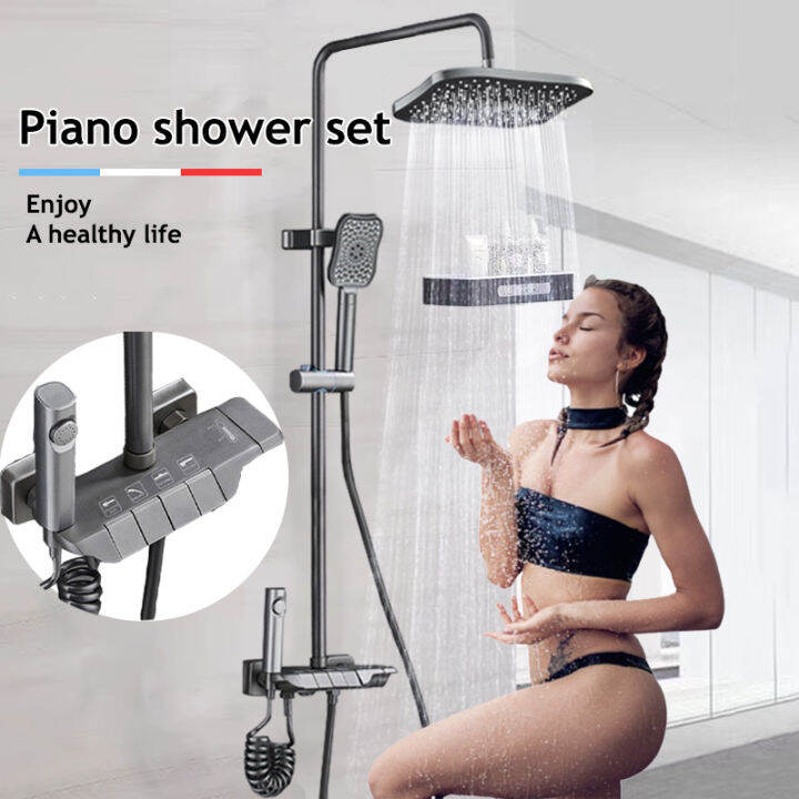 Shower Set In Square Piano Key Design Hot And Cold Shower Head Set Gun Grey Black With Mixer is a popular picture for sexy and hot.