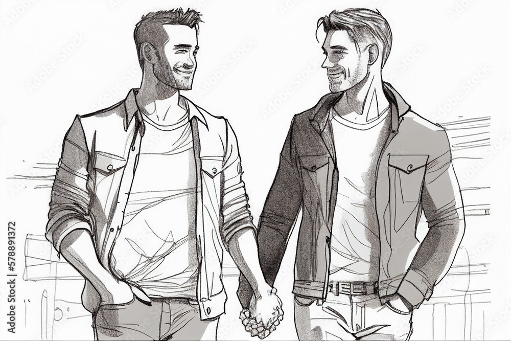 Sketch Of Happy Smiling Gay Couple Holding Hands Pride Proud Lgbt Generative AI Stock