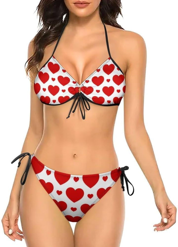 Skqit Women S Two Piece Bikini Swimsuit Lovely Red Hearts Love Print Sexy Swimwear Halter is a popular picture for sexy and hot.