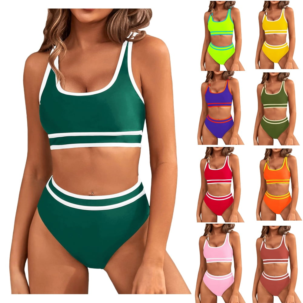 Sksloeg Bikini Sets For Women High Waisted Bikini Set Sporty Color Block Two Piece Swimsuit is a popular picture for sexy and hot.