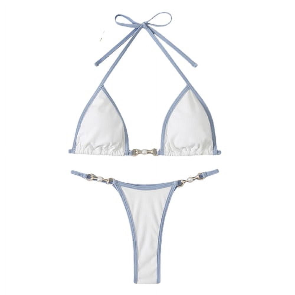 Skymirror Pcs Set Women Bikini Set Contrast Color Halter Neck Three Point Imitation Pearl Deep is a popular picture for sexy and hot.